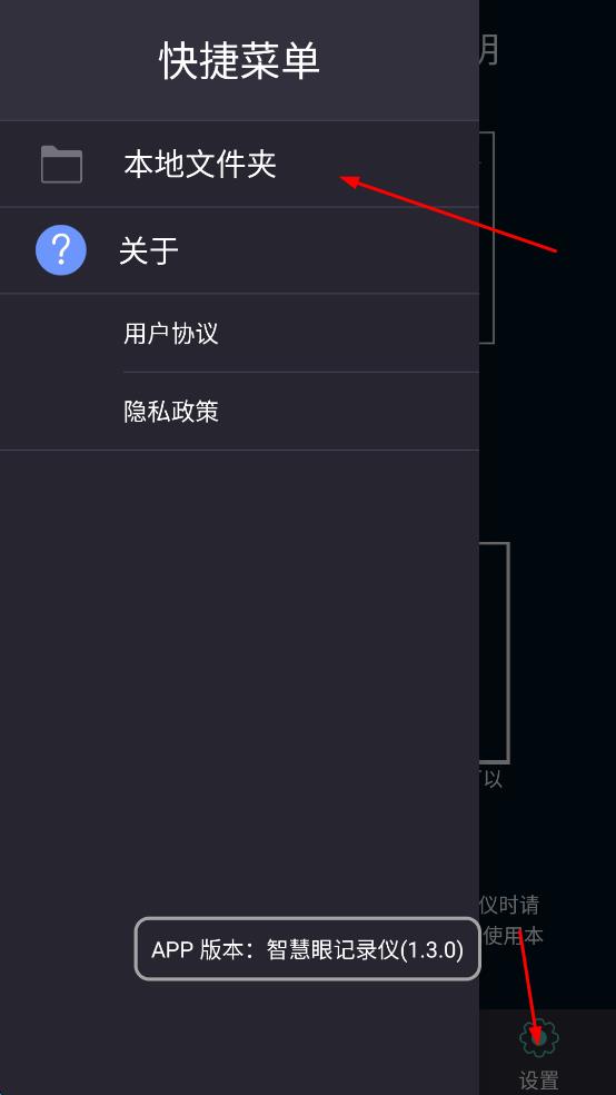 2、点击右下角的设置按键,打开设置后,点击本地文件夹,即可打开查看存储的内容。