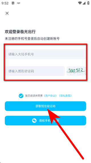 3、在登录页面,输入大陆手机号,勾选协议后,点击获取短信验证码。
