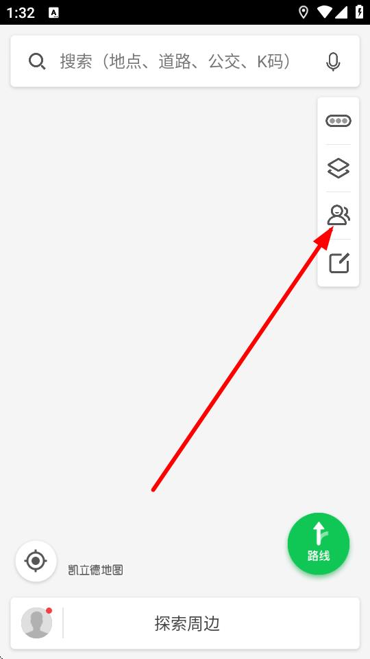 1、打开凯立德导航应用进入主界面,点击界面右侧人像图标进入我的好友界面。