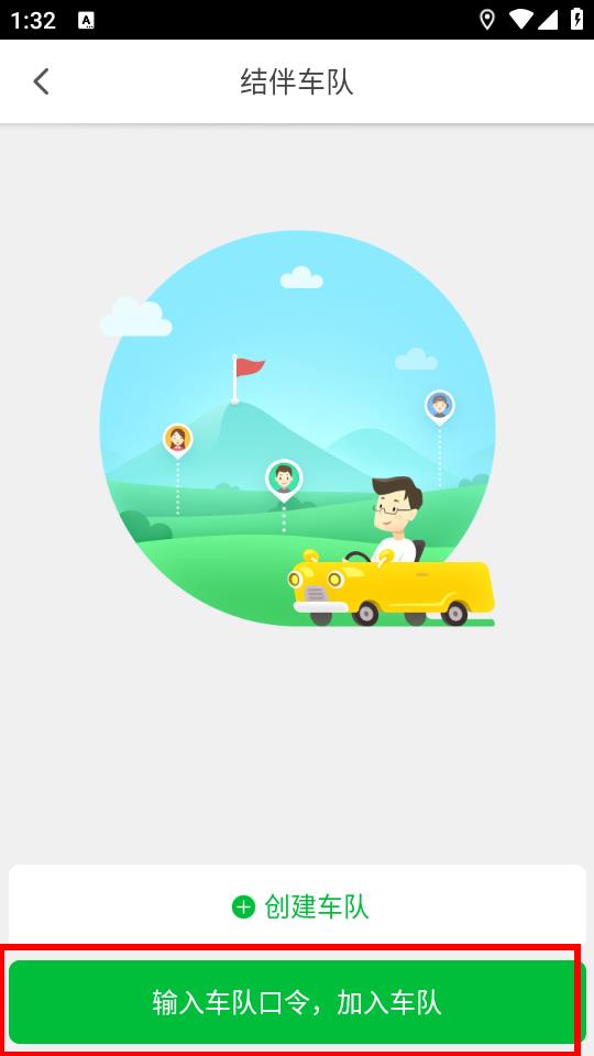3、进入结伴车队界面后,点击下方输入车队口令,加入车队按钮。