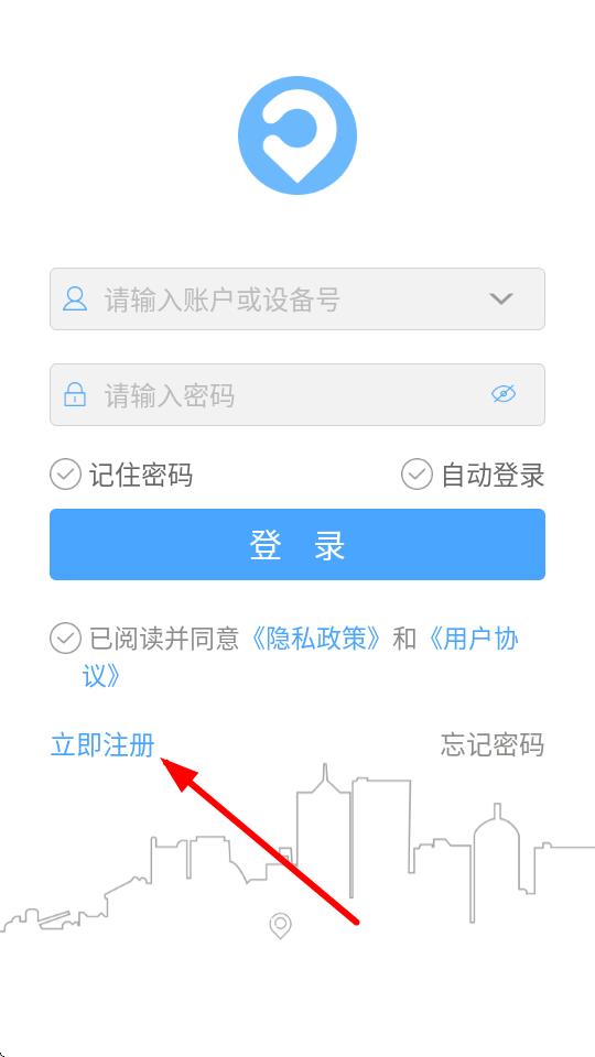 1、打开伴车星APP,在登录界面点击下方的立即注册选项。
