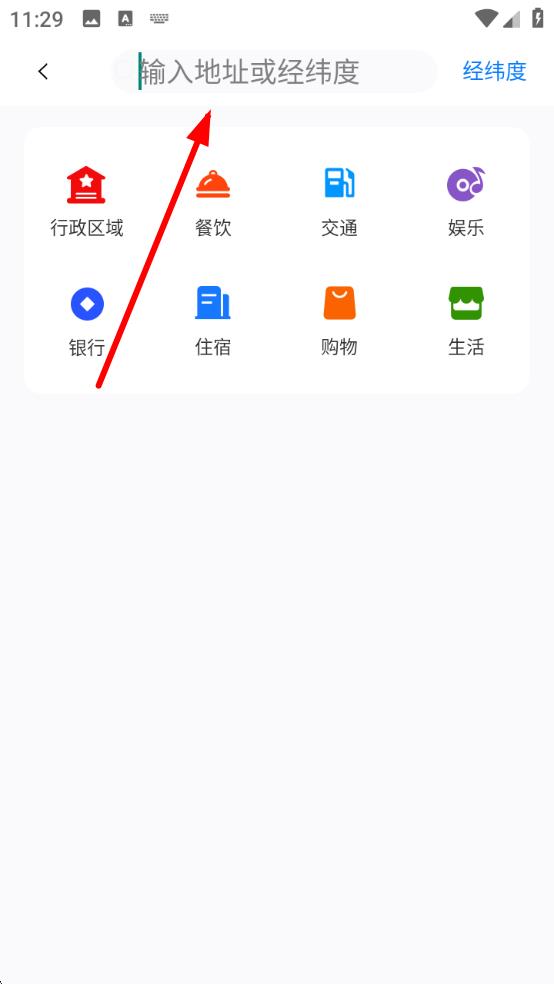2、在搜索界面中,找到输入地址或经纬度的输入框,准备进行坐标相关操作。