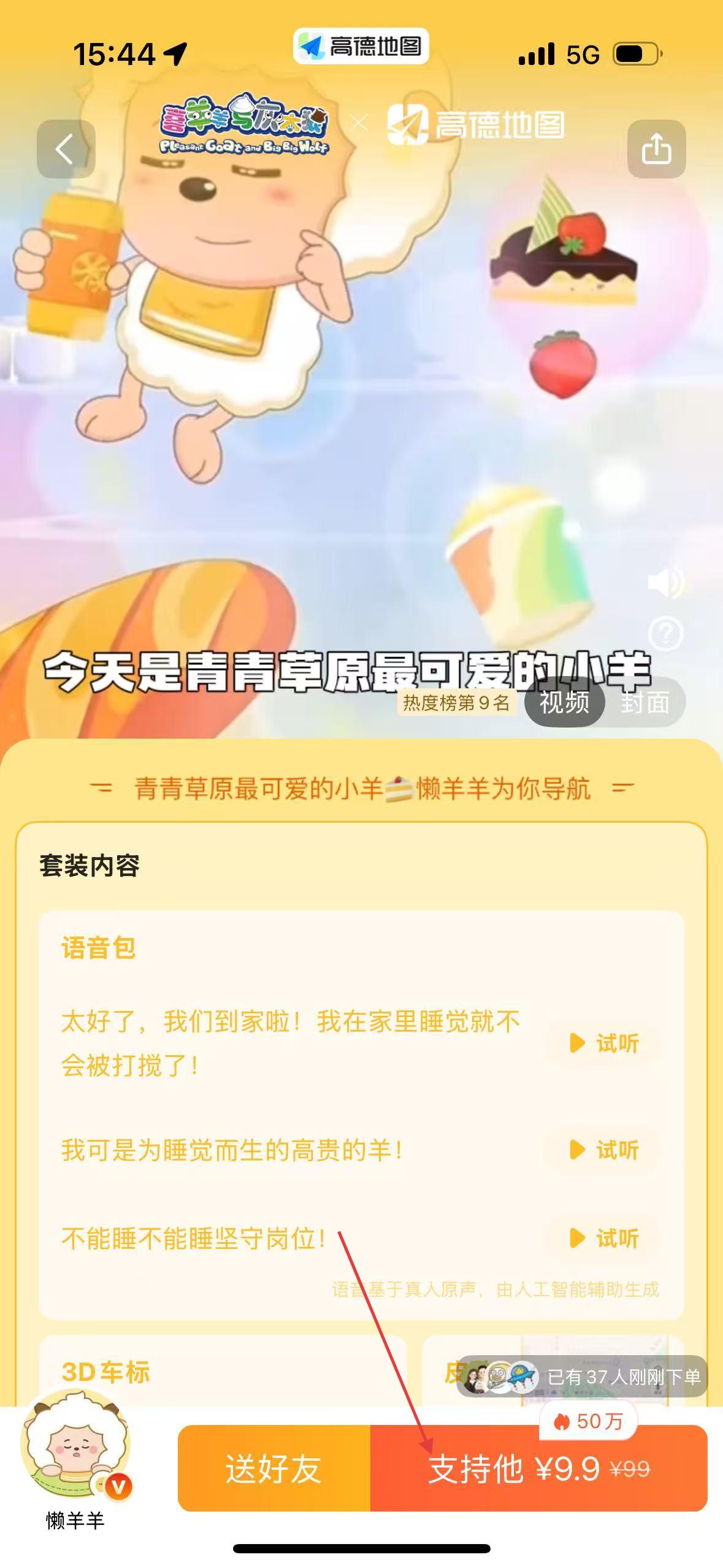 4、在语音包详情页,点击支持他按钮进行购买,即可设置该语音包。