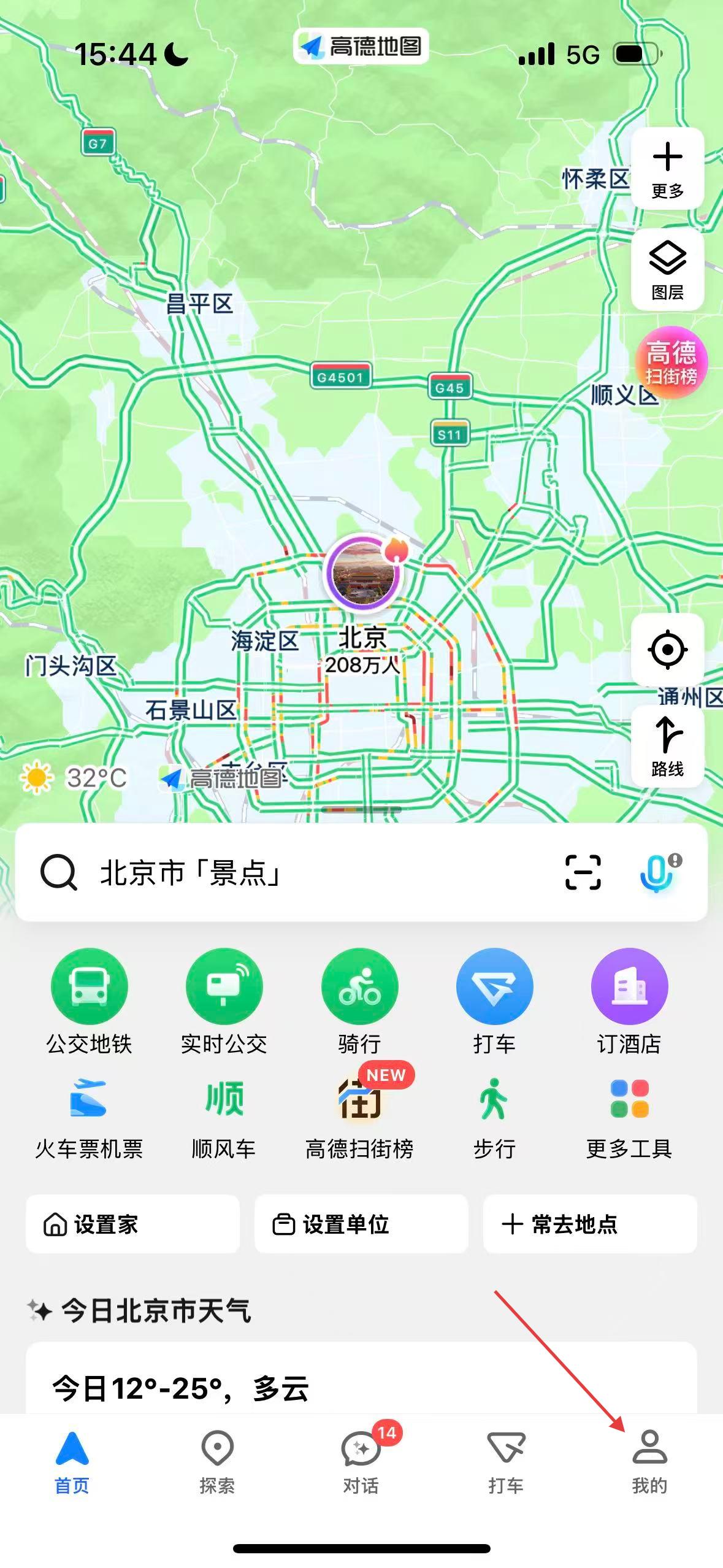 1、进入高德地图首页,点击我的选项,进入个人中心页面。