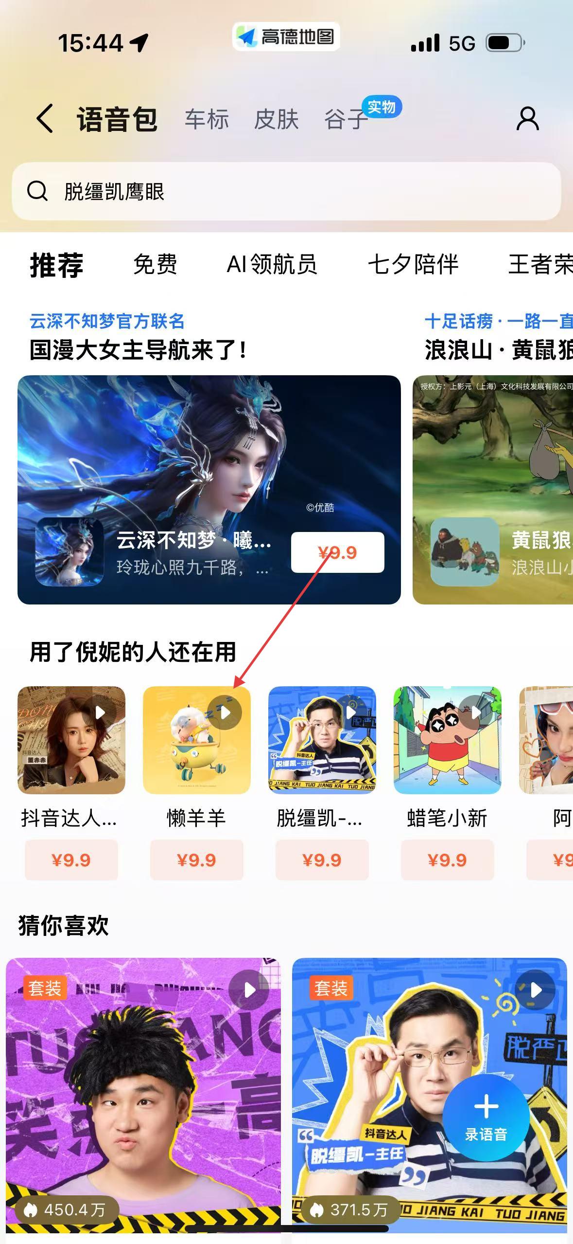 3、在语音包页面,挑选心仪的语音包,比如懒羊羊语音包,点击进入该语音包详情页。