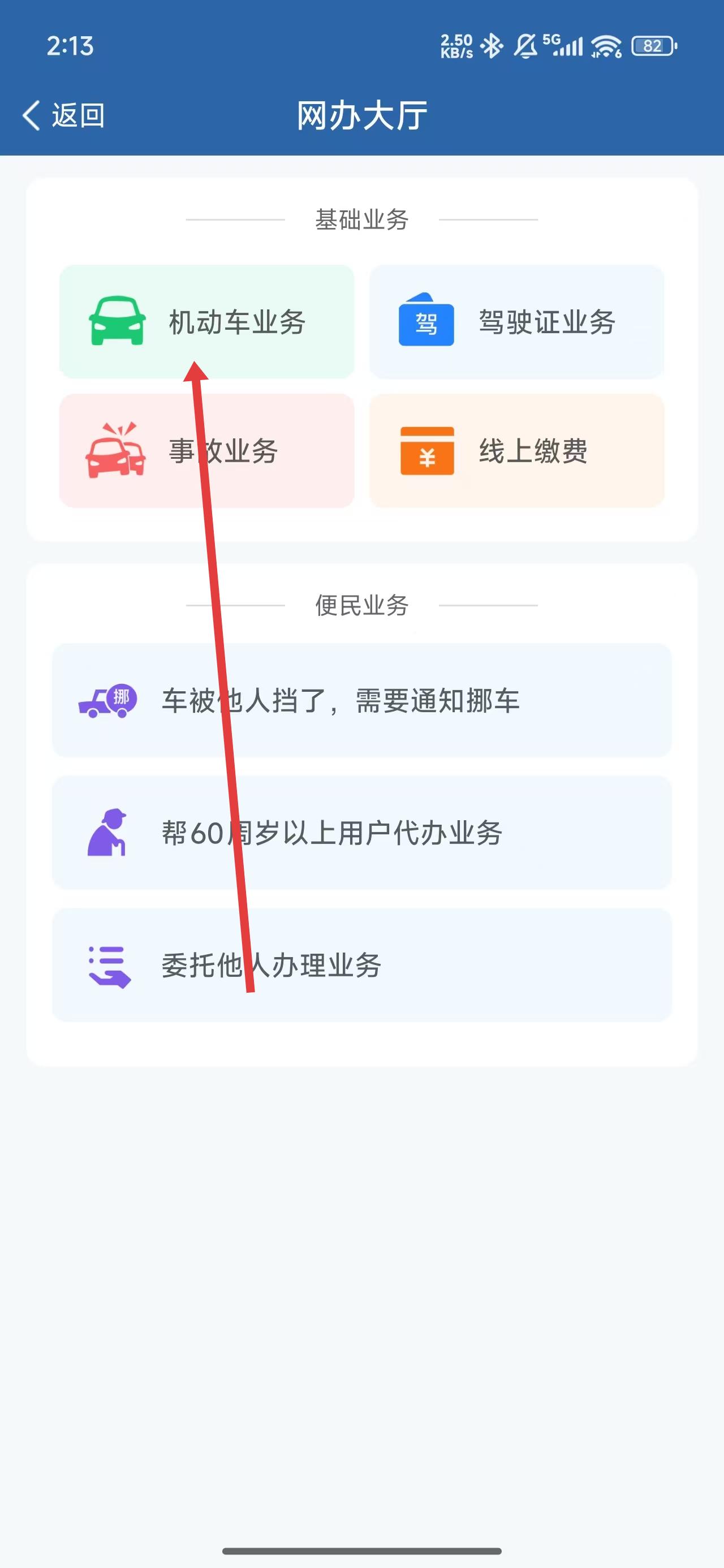 2、在进入到网办大厅后,可以点击机动车业务选项,进入办理相关业务。