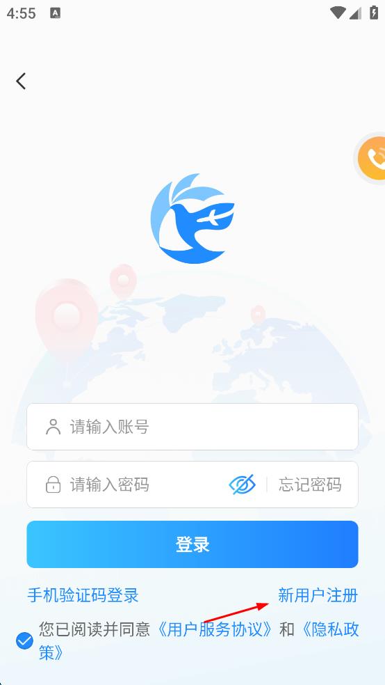 2、在登录注册界面,找到“新用户注册”选项,点击该选项,进入新用户注册页面。