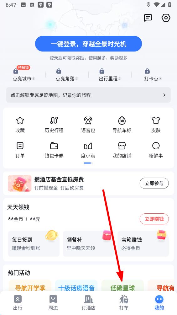 1、打开百度地图应用,点击底部导航栏中的打车选项,进入百度地图打车界面。