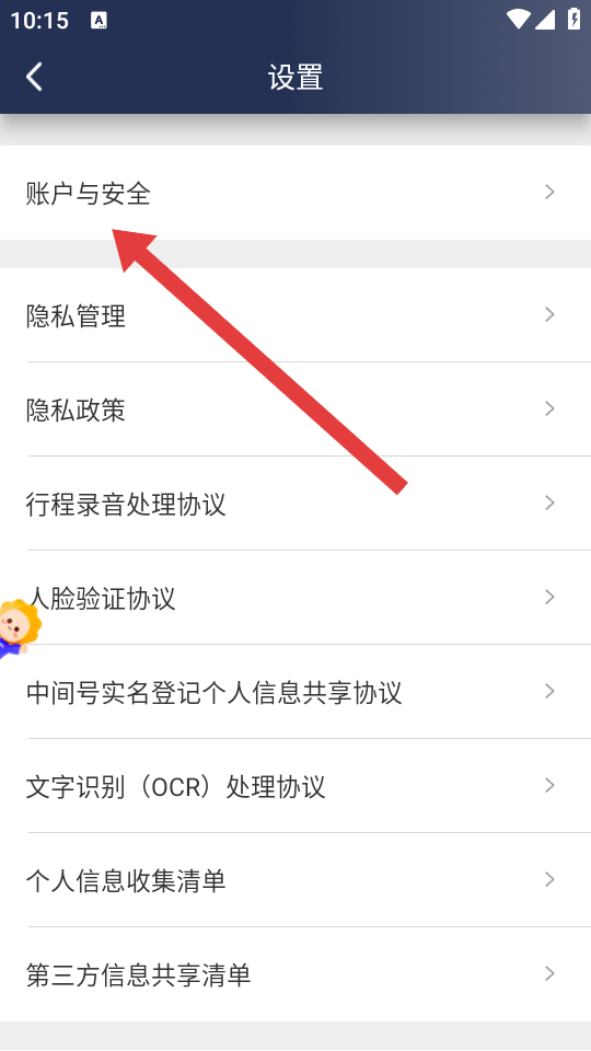 2、在个人账户设置页面中,找到并点击账户与安全的选项,进入账号安全相关设置界面。
