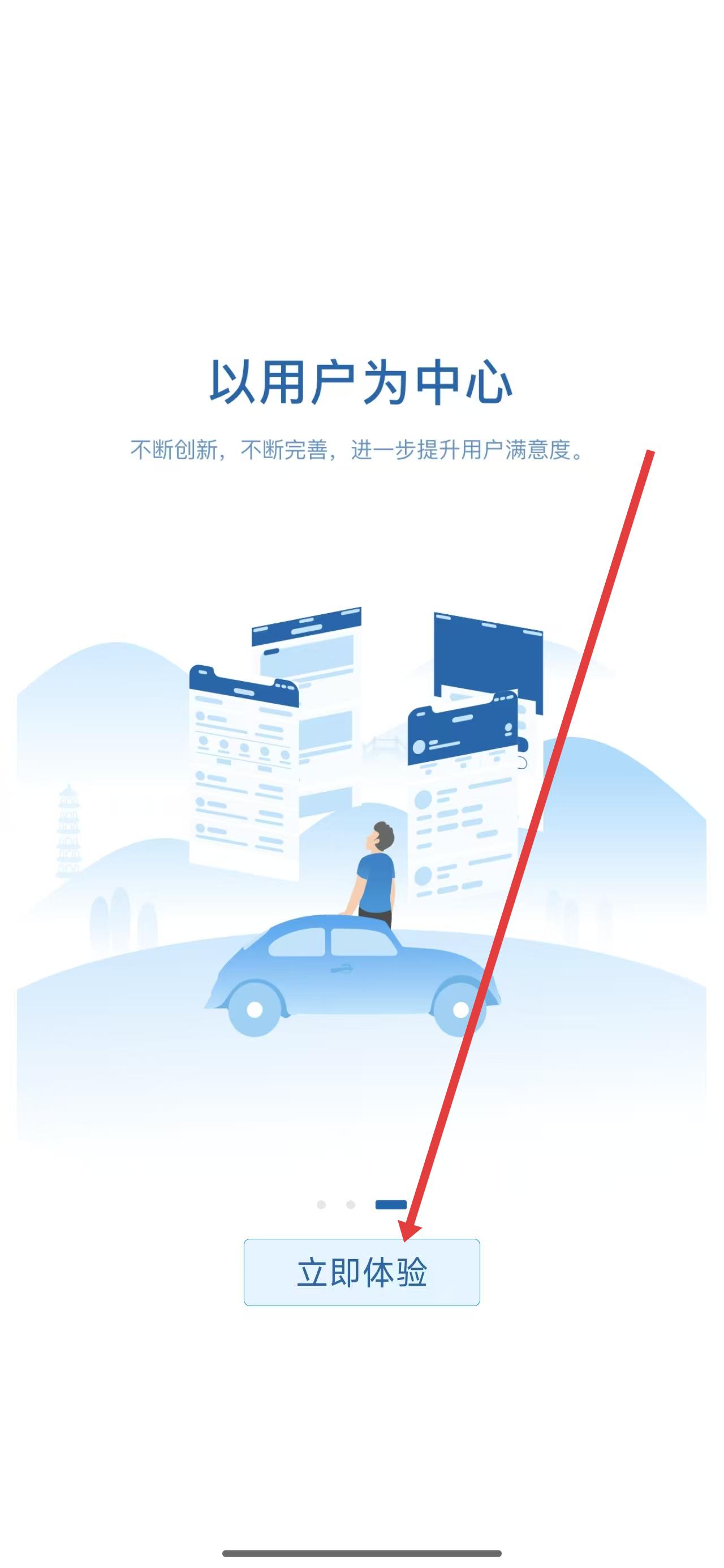 1、在打开交管12123app后,在介绍引导页面中点击立即体验按钮后进入使用。