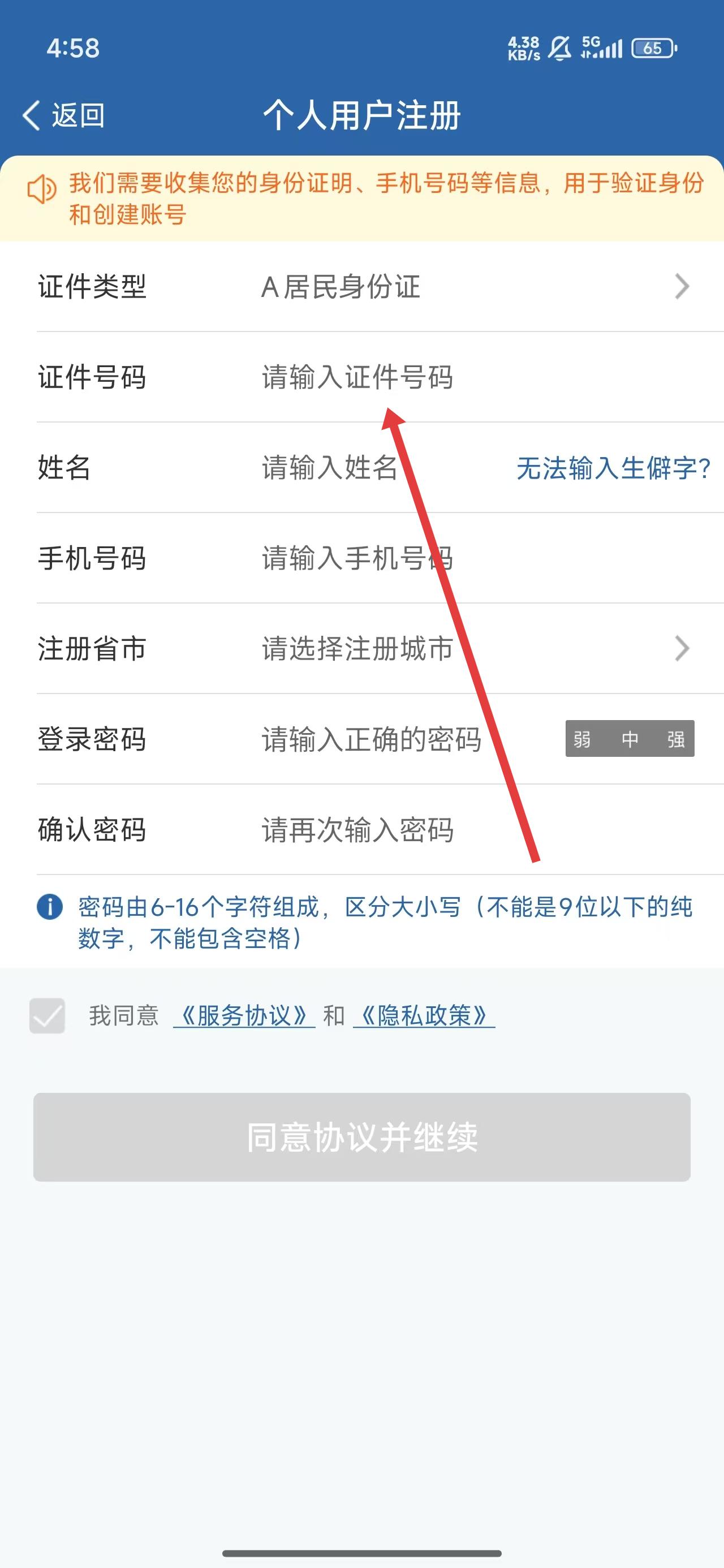 3、在个人用户注册页面中,点击输入框依次输入对应信息后完成注册用户操作。