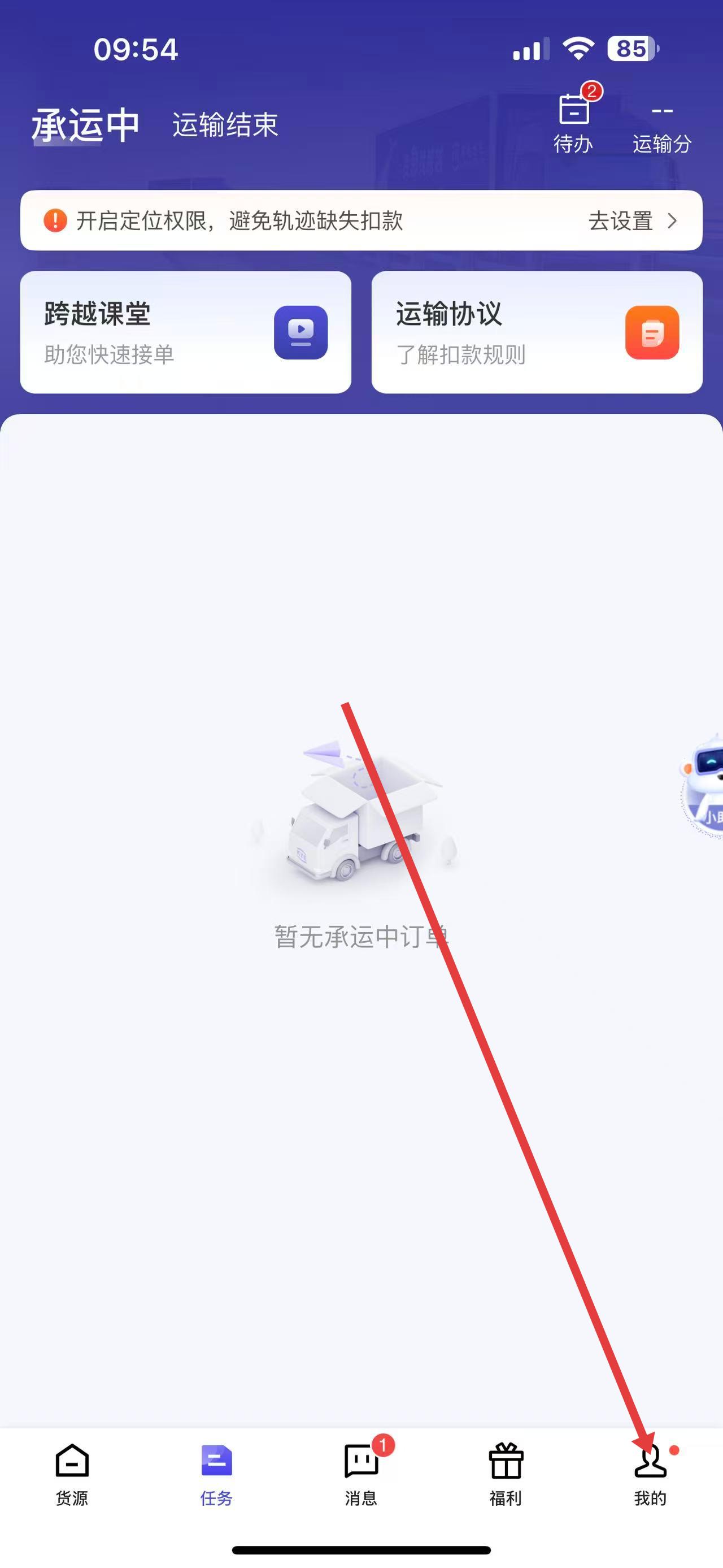 1、打开跨越运力app,点击底部导航栏最右侧我的选项,进入个人页面。