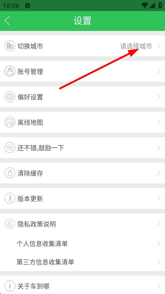 2、在设置页面中,点击切换城市栏的请选择城市。