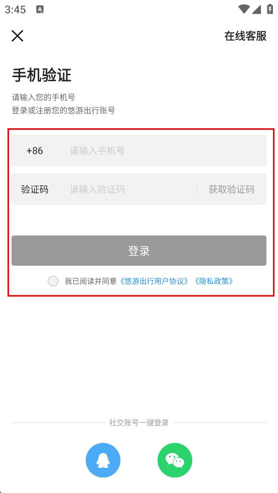 3、在手机验证登录界面,输入自己的手机号,点击“获取验证码”,输入收到的验证码,阅读后勾选协议,然后点击“登录”按钮,即可完成登录。