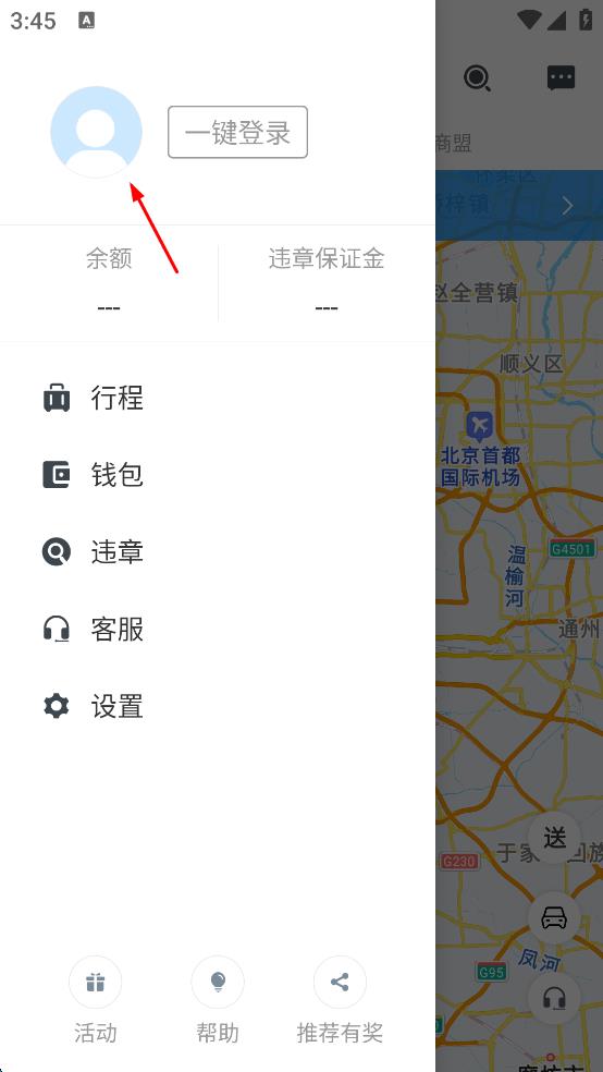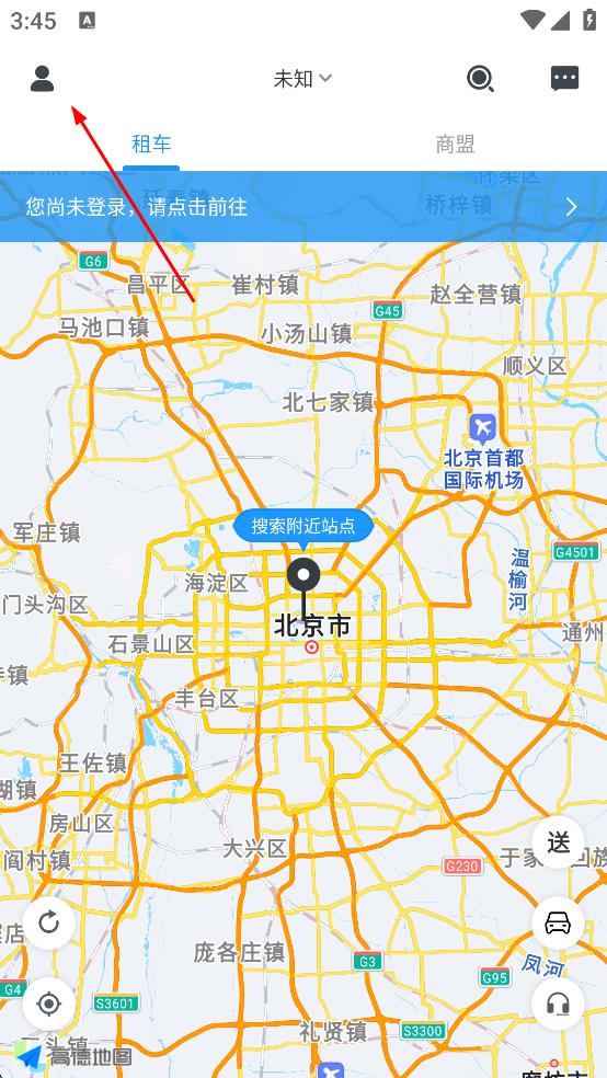 1、打开悠游出行软件,在地图界面左上角找到个人图标,点击该图标,进入个人相关页面。