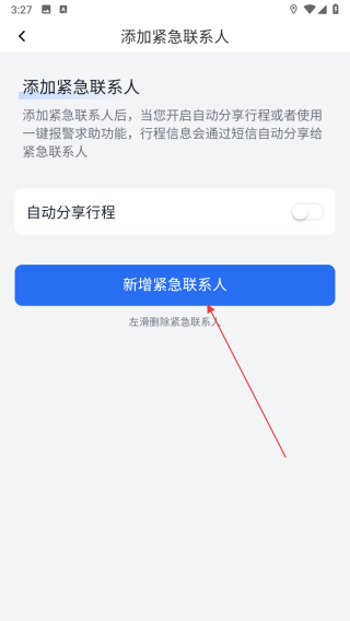 3、在添加紧急联系人页面,点击新增紧急联系人按钮。