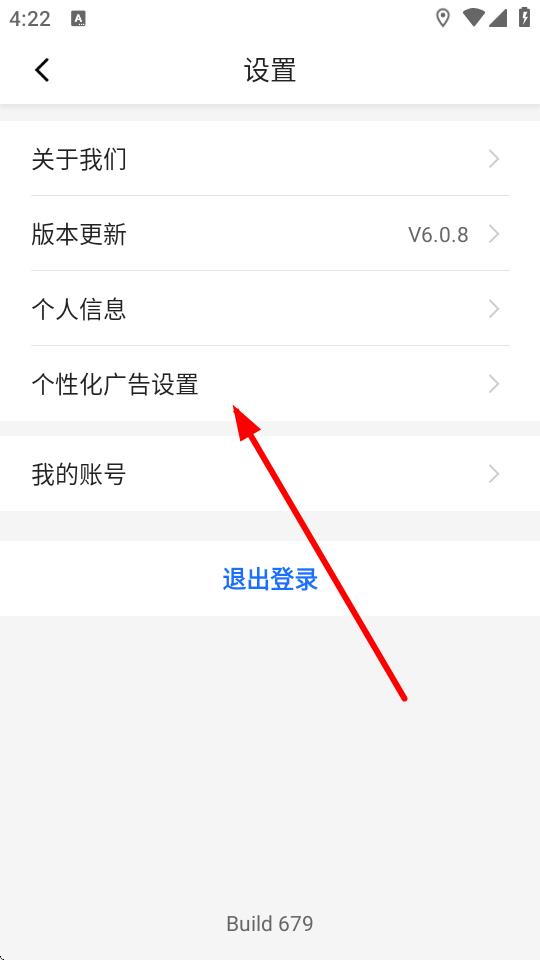 3、进入设置界面后,找到并点击个性化广告设置选项,进入个性化广告设置页面。
