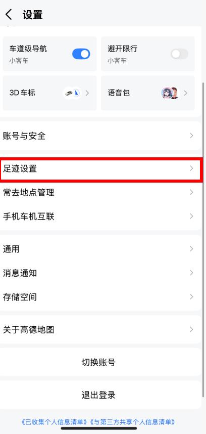2、在设置页面中,找到并点击足迹设置选项。