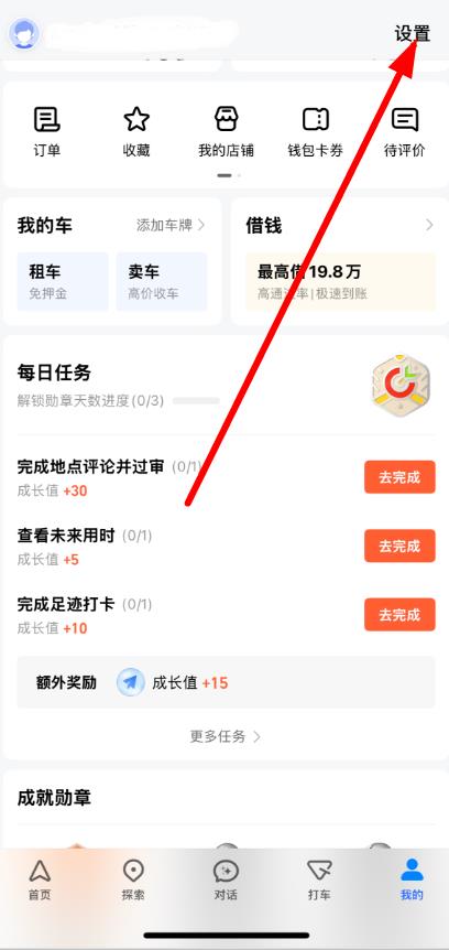 1、打开高德地图APP,点击底部导航栏我的,再点击右上角设置图标。