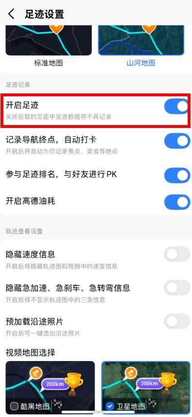 3、进入足迹设置页面后,点击开启足迹右侧的开关,将其关闭,即可停止足迹数据的记录。
