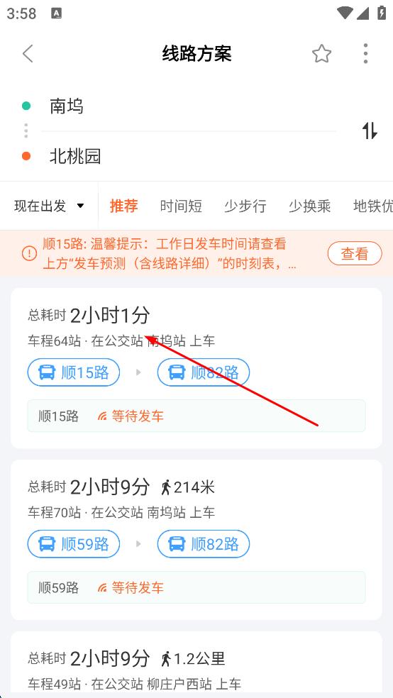 去哪儿?结合公交动态信息、首末班发车信息及路径距离等多维度的精准换乘方案;