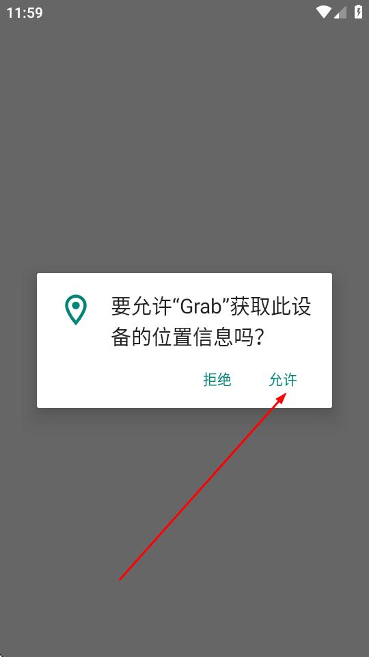 1、打开Grab应用,在弹出的是否允许获取位置信息的提示框中,点击允许。