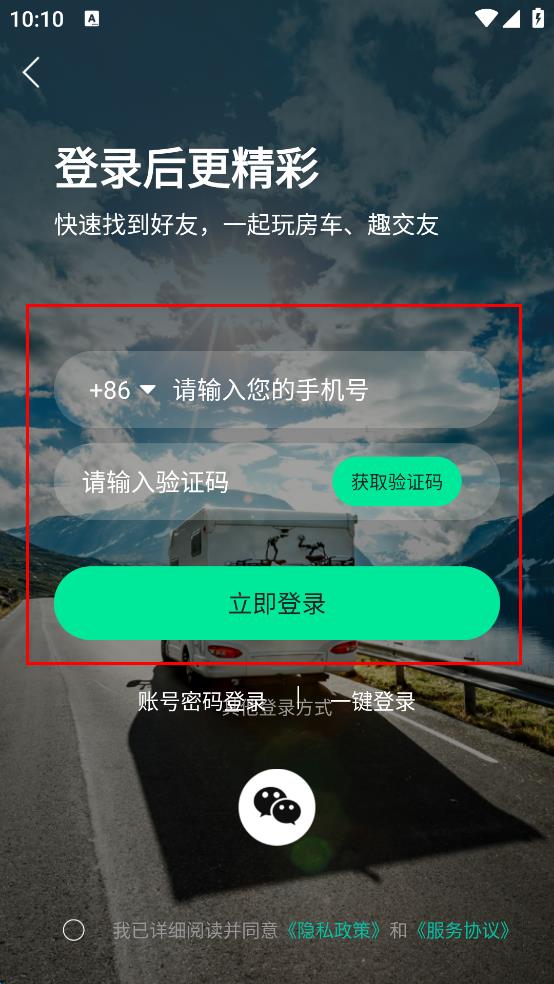 3、进入登录页面后,输入手机号码,点击获取验证码,等待并输入收到的验证码。
