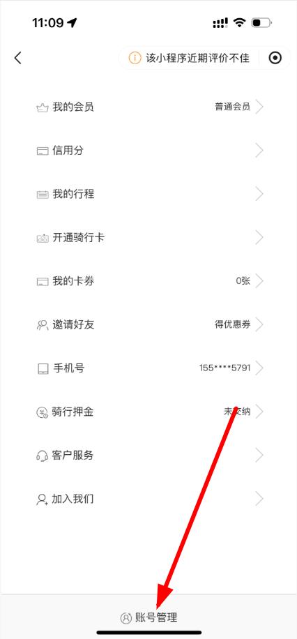 1、打开芒果电单车小程序或APP,进入个人中心页面。