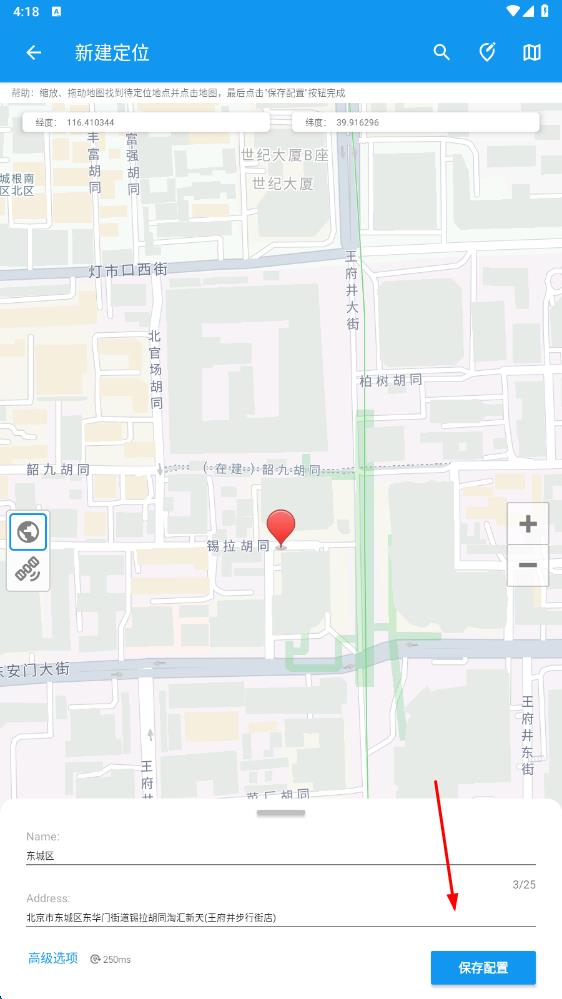 3、返回主界面,选择已创建的定位条目,点击启动模拟定位,即可开始模拟对应位置的定位 。