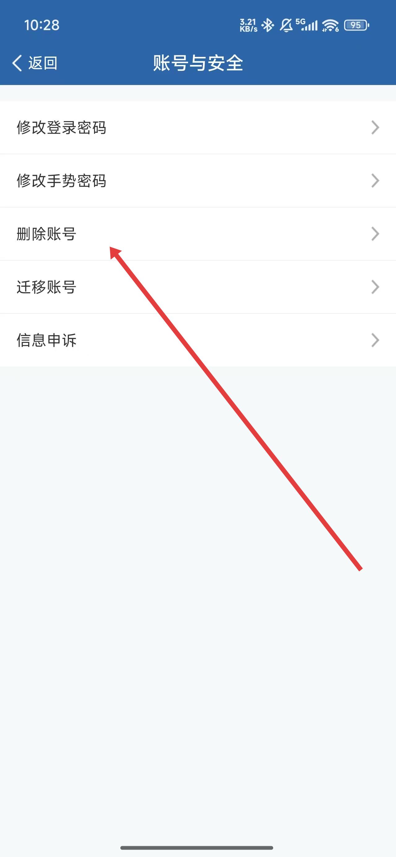 3、在账号与安全页面下,找到点击删除账号选项,随即开始删除操作。