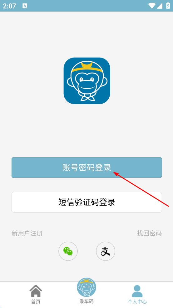 3、在个人中心页面,看到“账号密码登录”按钮,点击此按钮,进入账号密码登录界面。