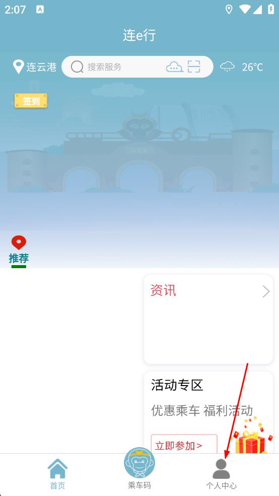 2、在连e行主界面,找到底部的“个人中心”选项,点击该选项,进入个人中心页面。