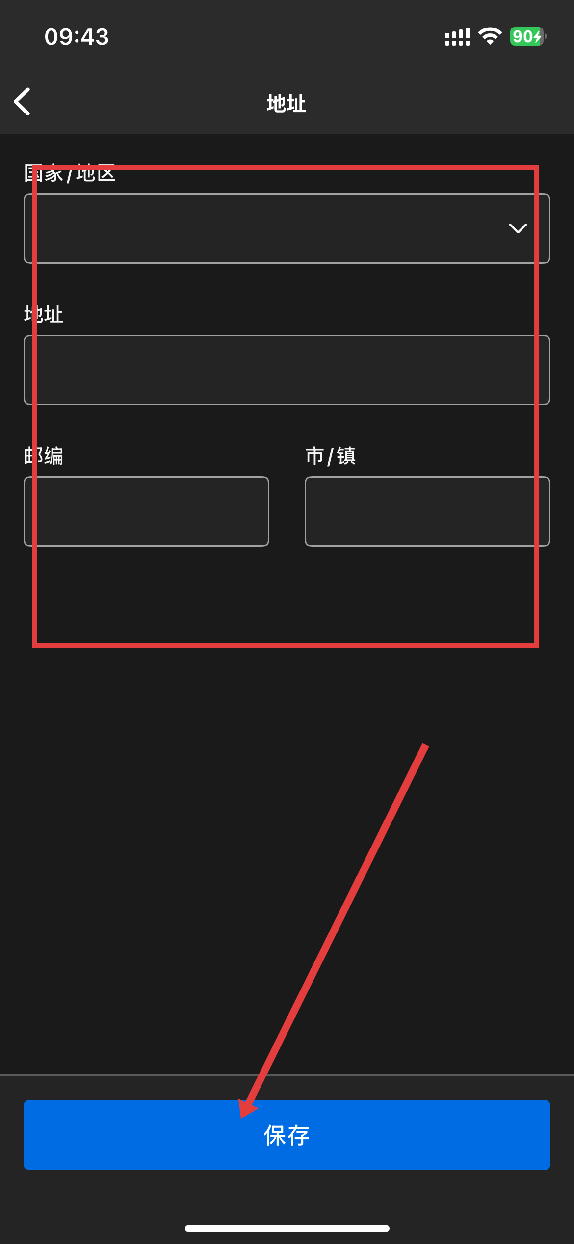 4、填写好地址信息,点击保存即可完成添加地址。