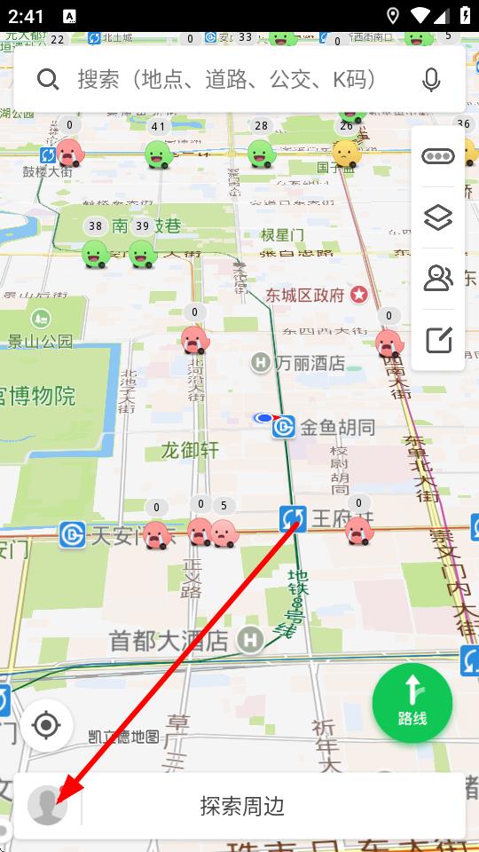 K友在线:地图上的其他用户显示的颜色帮你快速区别拥堵情况。