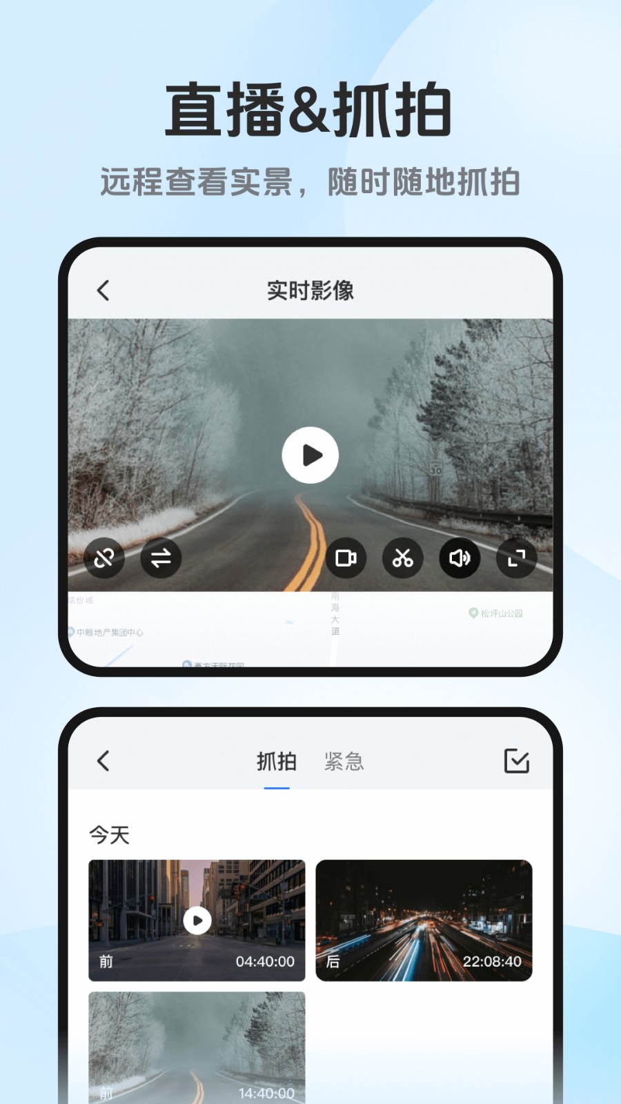 是一款针对记录仪的管理工具,帮助您远程控制、管理记录仪,绑定记录仪之后可以进行实景查看、图片抓拍、视频抓拍等,以及分享抓拍视频到动态圈,快让“小路”成为你的记录仪管家吧!