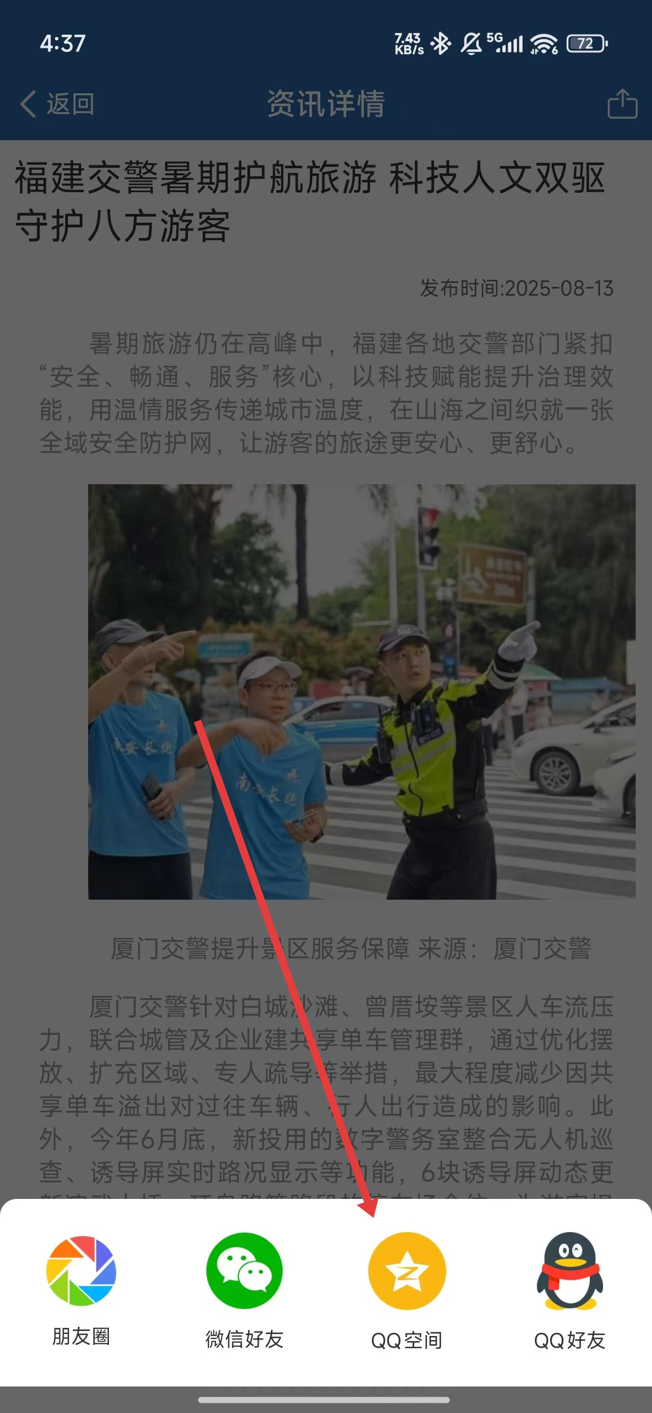4、可以通过点击QQ空间选项,转发到QQ空间中。