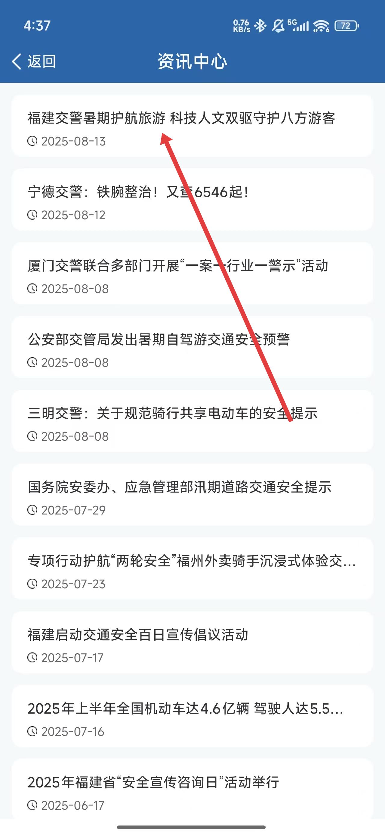 2、在进入到资讯中心页面后,可以点击第一条资讯进入查看。