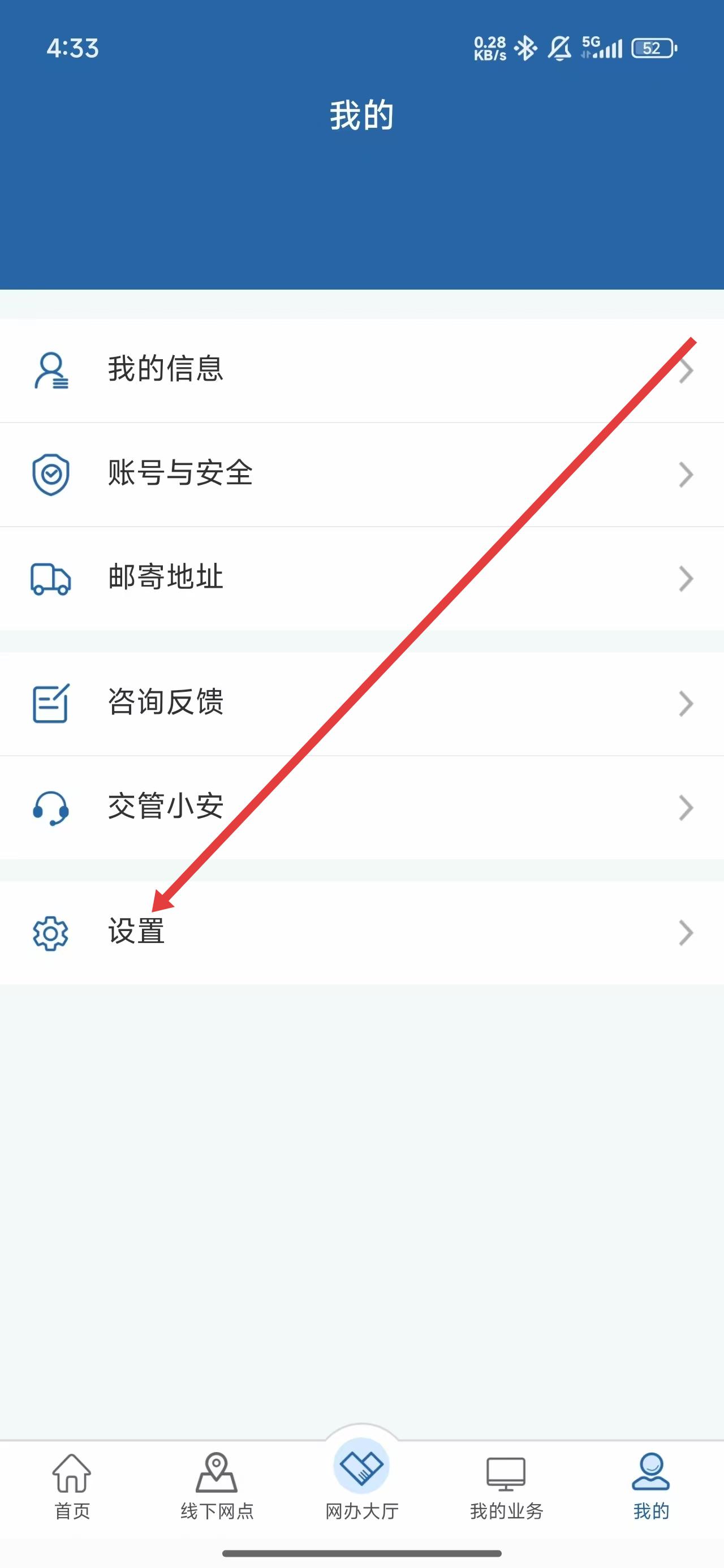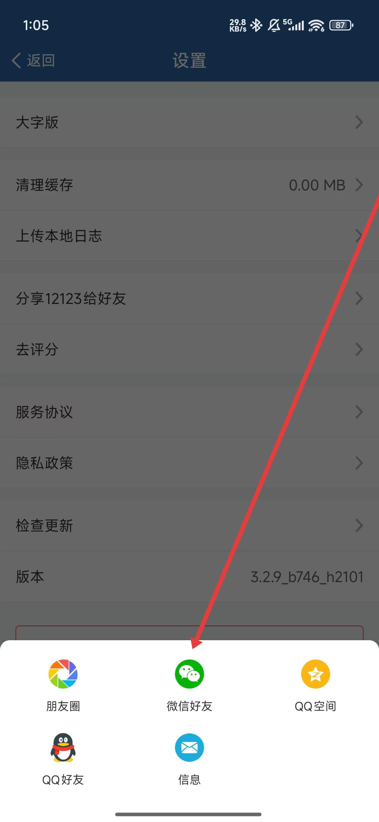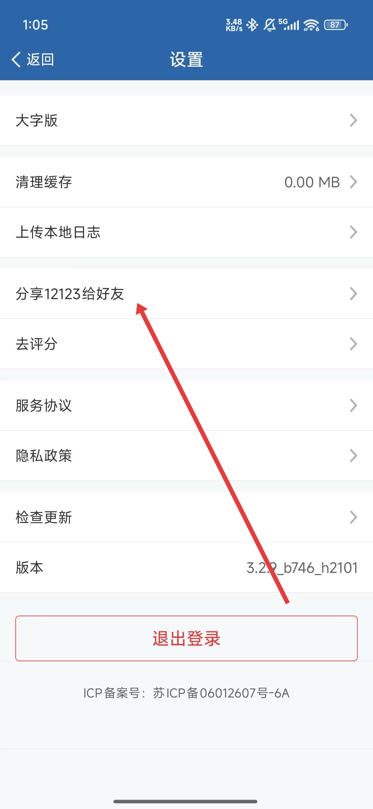 3、进入到设置页面后,可以点击分享12123给好友选项,进行分享。