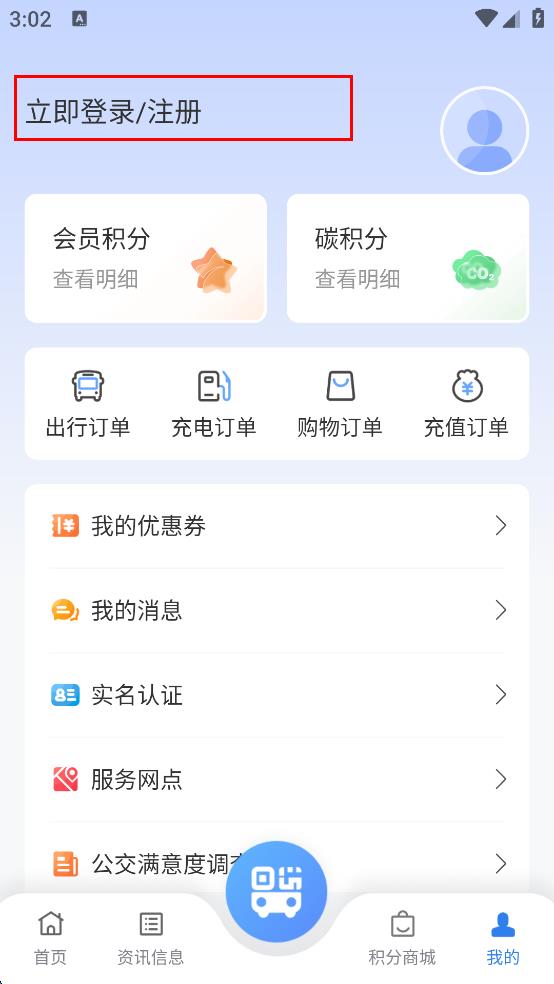 2、在“我的”页面,找到上方“立即登录/注册”的提示区域,点击该区域,进入登录界面。