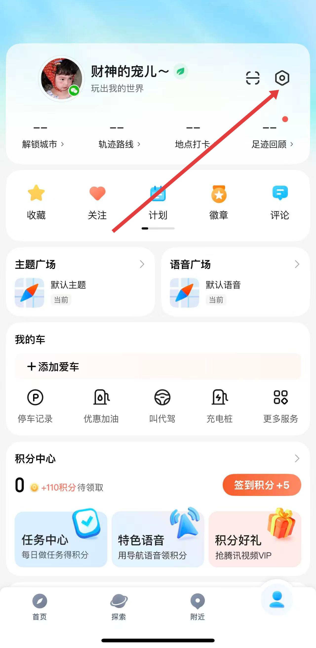 1、打开腾讯地图APP,点击右下角我的,进入个人页面后,点击右上角的设置图标。