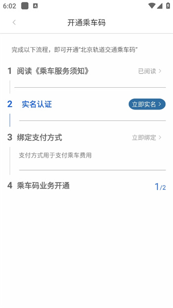 4、在这里乘车需要通过乘车码的一整个验证流程,同意相关的乘车服务须知,进行自己的实名认证、绑定制度的渠道,之后就可以开通自己的地铁乘车业务了。