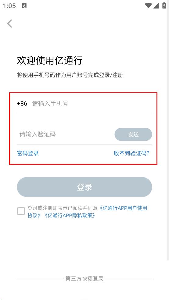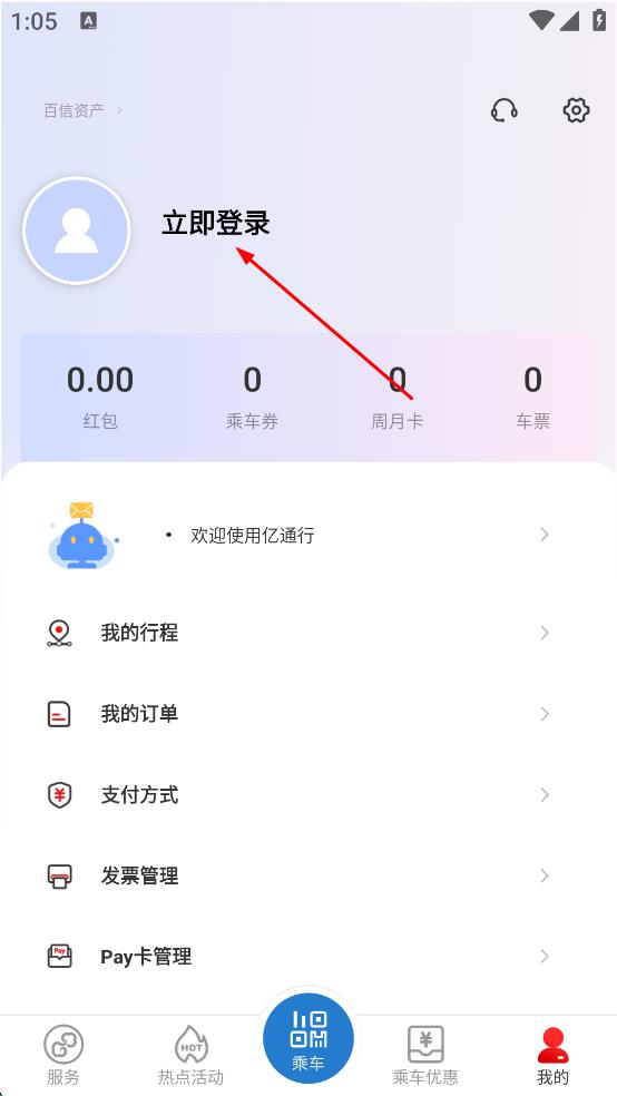 1、在亿通行APP首页,点击“在线购票”或“立即开通”,转到登录页;