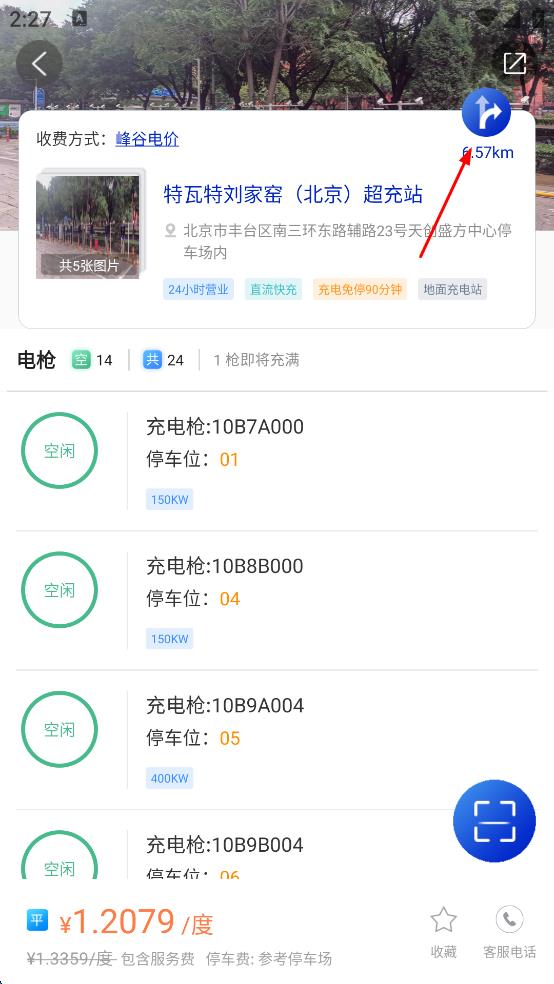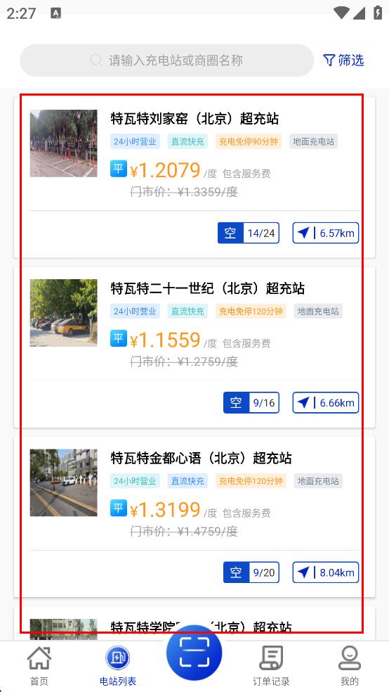 2、在电站列表页面,浏览众多超充站信息,找到充电站,点击该超充站,进入其详情页面。