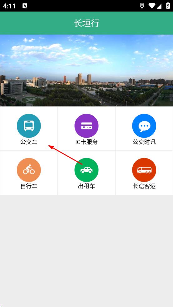 2、在长垣行主界面,找到“公交车”选项,点击该选项,进入公交搜索页面。