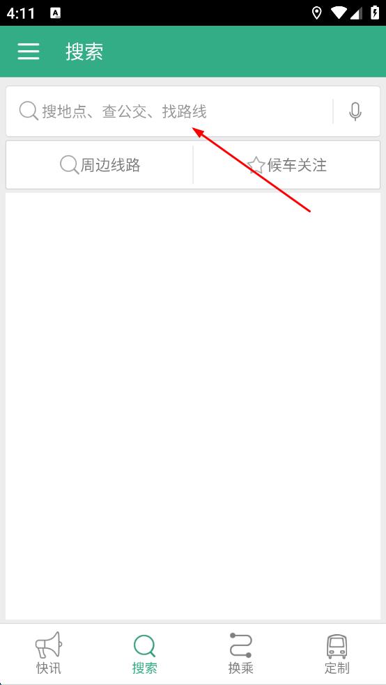 3、在公交搜索页面,点击搜索框,输入要查询的公交相关信息,如地点、公交或路线等。