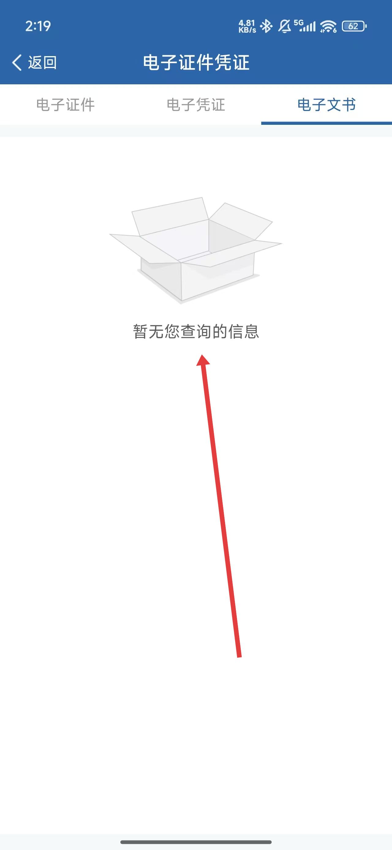 3、在进入到电子文书模块下,可以查看到当前暂无查询的信息。