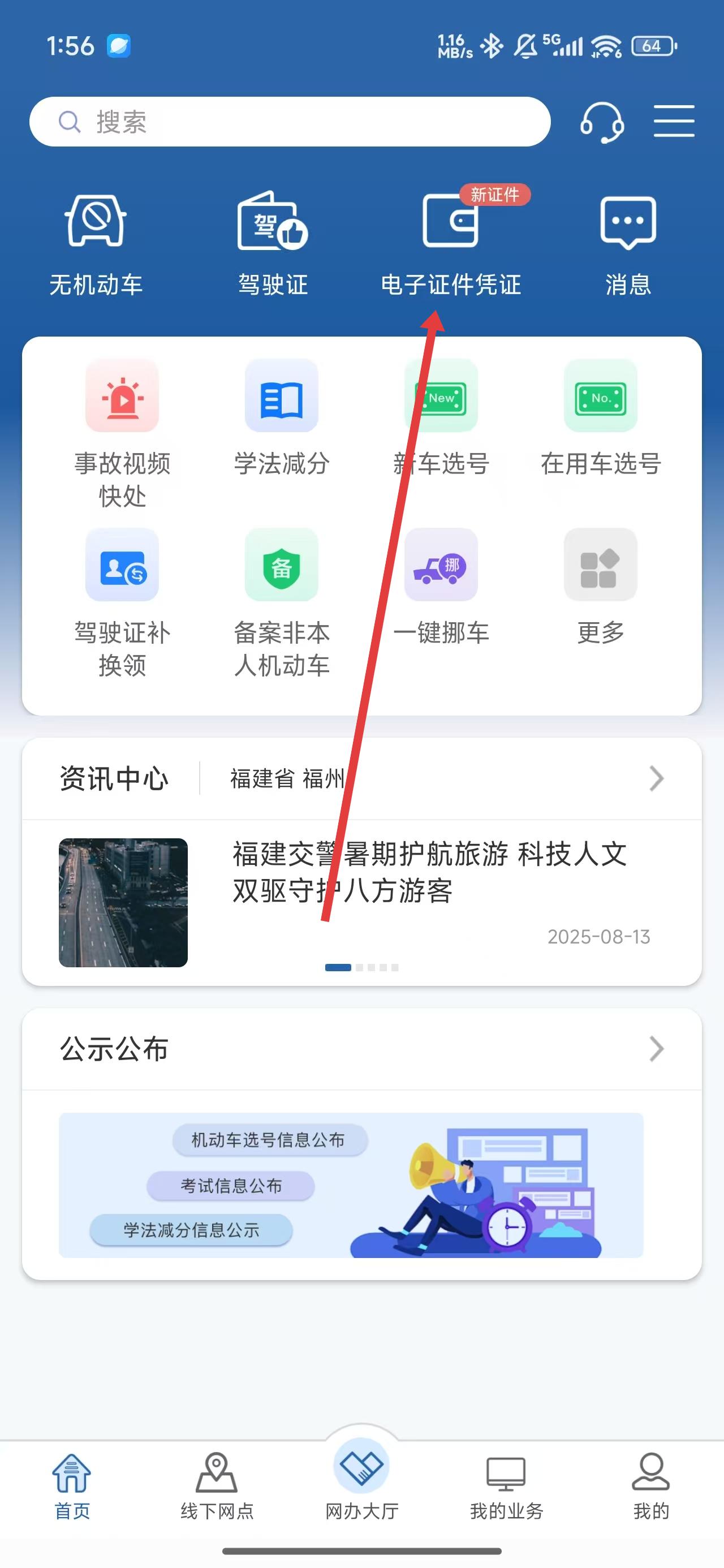 1、在进入到应用首页中后,可以点击电子证件凭证按钮,进入查看有关服务功能。