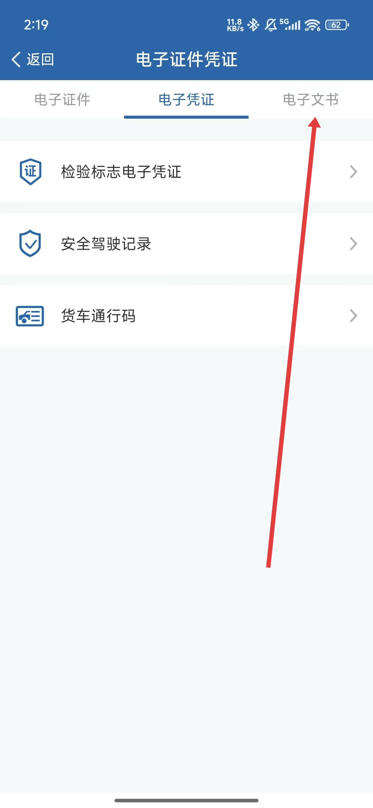2、在进入到电子证件凭证页面后,可以点击电子文书模块查看相关信息记录。