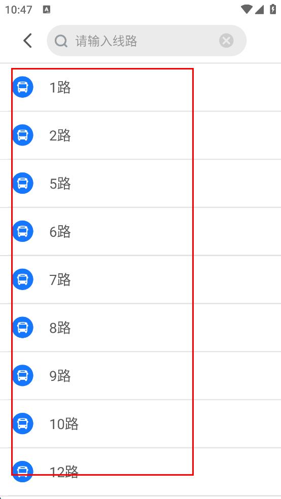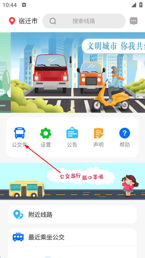 2、在应用主界面,点击“公交车”选项,进入到公交线路选择页面。