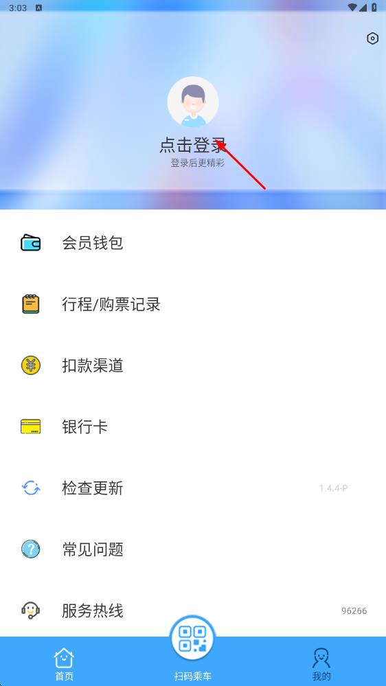 1、打开乌鲁木齐地铁APP,阅读隐私政策后点击“同意”,进入“我的”页面,点击“点击登录”。